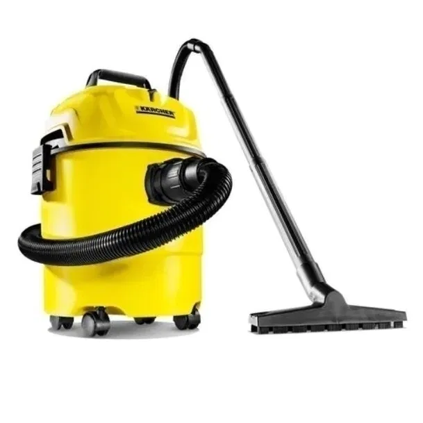 Aspirador en seco y húmedo, recipiente de plástico robusto.