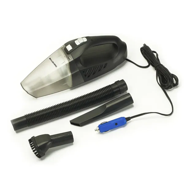 Aspiradora portatil 12V. Ideal para limpiar todos los líquidos y sólidos de tu auto. Filtro Lavable y 2 boquillas de succión.
