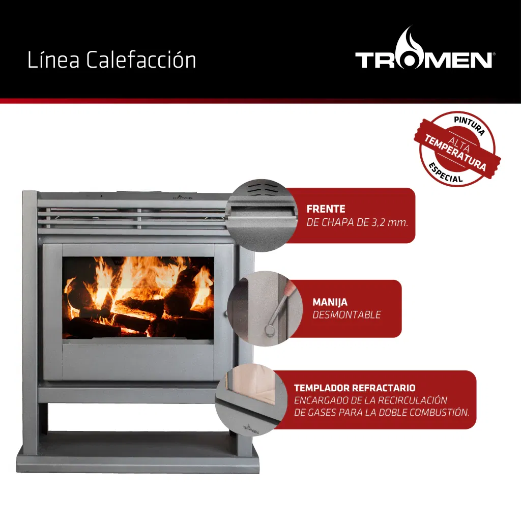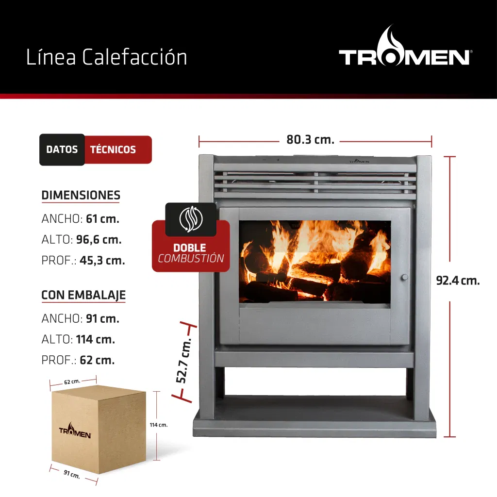 Ofrece un calor envolvente con un diseño robusto y eficiente, perfecto para mantener cualquier ambiente cálido y confortable durante todo el invierno.
