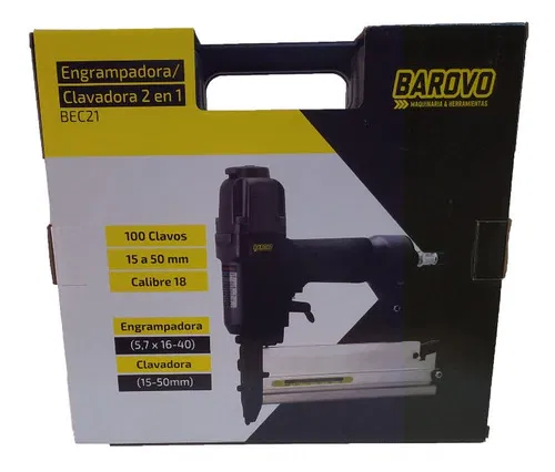 - incluye Clavadora - engrampadora, aceite lubricador, acople rápido macho, manual de instrucciones y maletin de transporte