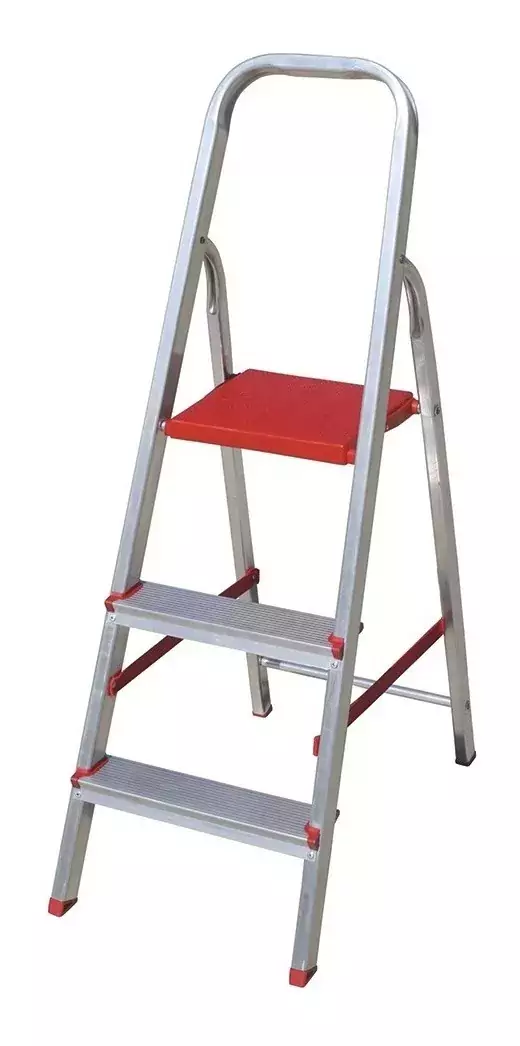 CARACTERISTICAS: Escalera de aluminio hogar 3 escalones EBD3 Material: aluminio Peso máximo: 120 kg Medidas cerrada: 39,0 cm × 10,5 cm × 118,3 cm Altura útil: 63 cm Peso: 2,17 kg