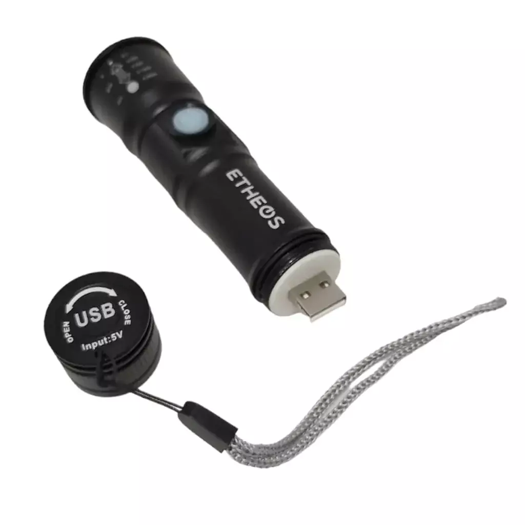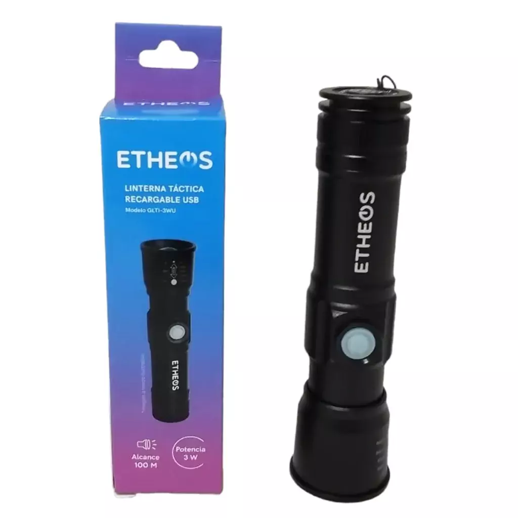 Linterna Tactica Recargable Carga Usb Camping Etheos 3w 100m