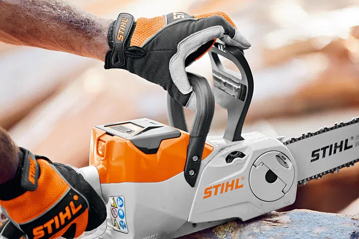 Motosierra de batería para el jardín, cuidado de parcelas y corte de leña para la chimenea. Con tensado de cadena rápido y freno de cadena Quickstop Super. Cadena 1/4" PM3, para un corte limpio y buena potencia de corte. Silenciosa, sin necesidad de protección auditiva