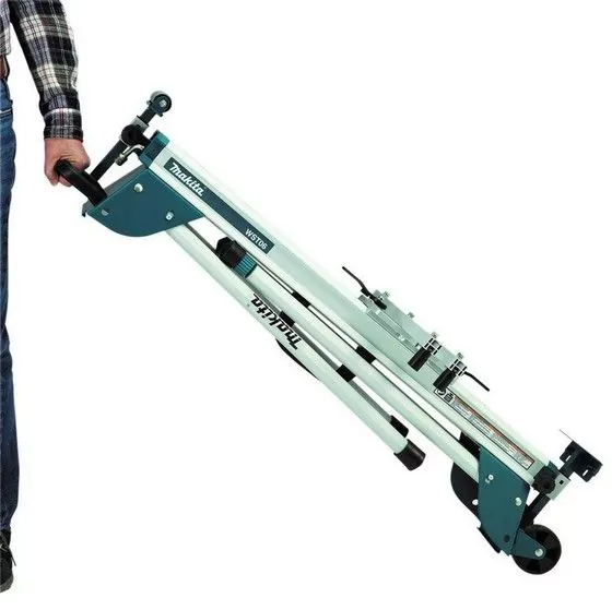 Las ruedas permiten movilidad cuando la ingletadora está montada sobre la mesa.