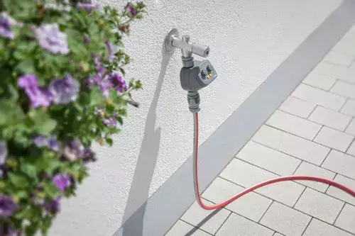 Con los sistemas de riego automáticos de REHAU se puede disfrutar a pleno el tiempo libre. Por medio del reloj programador de riego o bien la computadora de riego, el riego se realiza en forma totalmente automática, siempre en el horario correcto. Y su configuración es bien sencilla: simplemente debe ingresar la duración y el intervalo o bien el programa deseado y el riego es automático.
