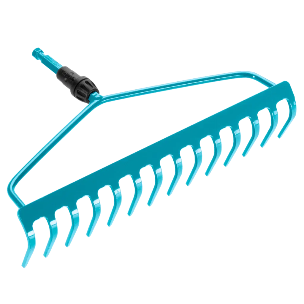 El rastrillo con puente combisystem GARDENA es un práctico rastrillo multifunción y es perfecto para rastrillar, nivelar y trabajar la tierra. Gracias al soporte en D y a la anchura de trabajo de 36 cm con 14 púas, el trabajo duro que requiere una guía segura no es un problema. El rastrillo con puente es adecuado para todos los mangos combisystem GARDENA, por lo que GARDENA recomienda una longitud de mango de 150 cm, dependiendo de la altura del cuerpo.
