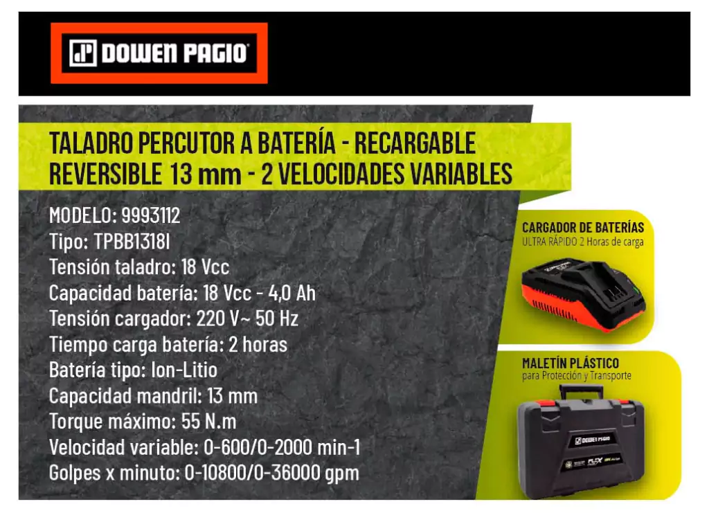 Capacidad batería: 18 Vcc – 4,0 Ah